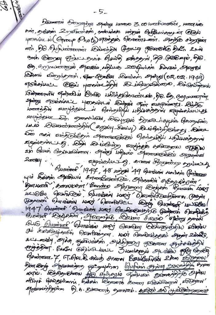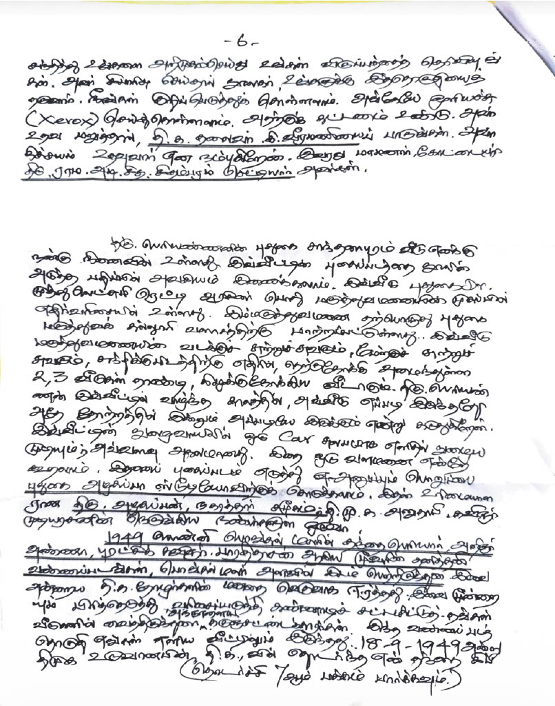 There are a lot more interesting and historic details like this throughout the letter. Many names that we associate with history today, all of whom contributed significantly to the Dravidian movement, are mentioned in the letter. This letter not only tells the story of AR. Periyannan’s early life in the 40s and 50s, but in many ways also documents the founding and workings of the Dravidian movement.