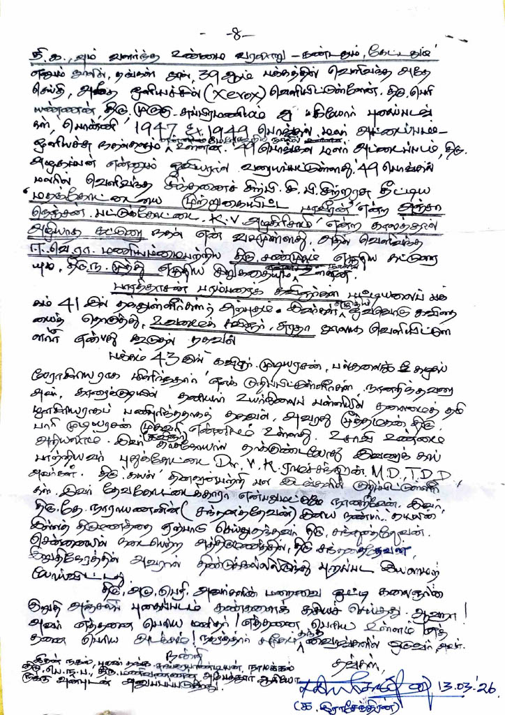 Thank you Rajendran Ayya, 8 Pages Letter – Founding and Workings of the Dravidian Movement