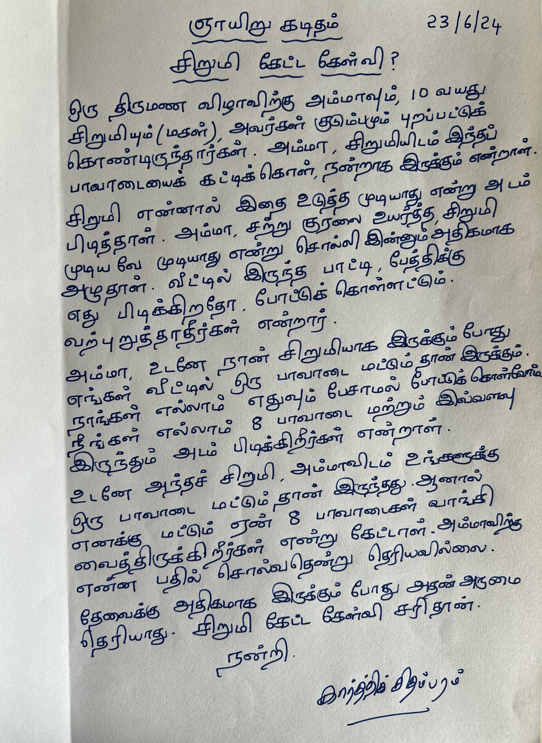 சில வாரங்கள் ஓடின. வாகனம் திரும்ப வீட்டிற்கு வரவில்லை. இரண்டு பேர் கூப்பிட்டு ‘வாடிக்கையாளர் சேவை’ எப்படி என்று கேட்டார்கள். அலைபேசியை எடுக்க-வில்லை என்றால் சிறிது நேரம் கூட காத்திருக்காமல் நாம் எடுக்கும் வரை திரும்பி அழைப்பர்.